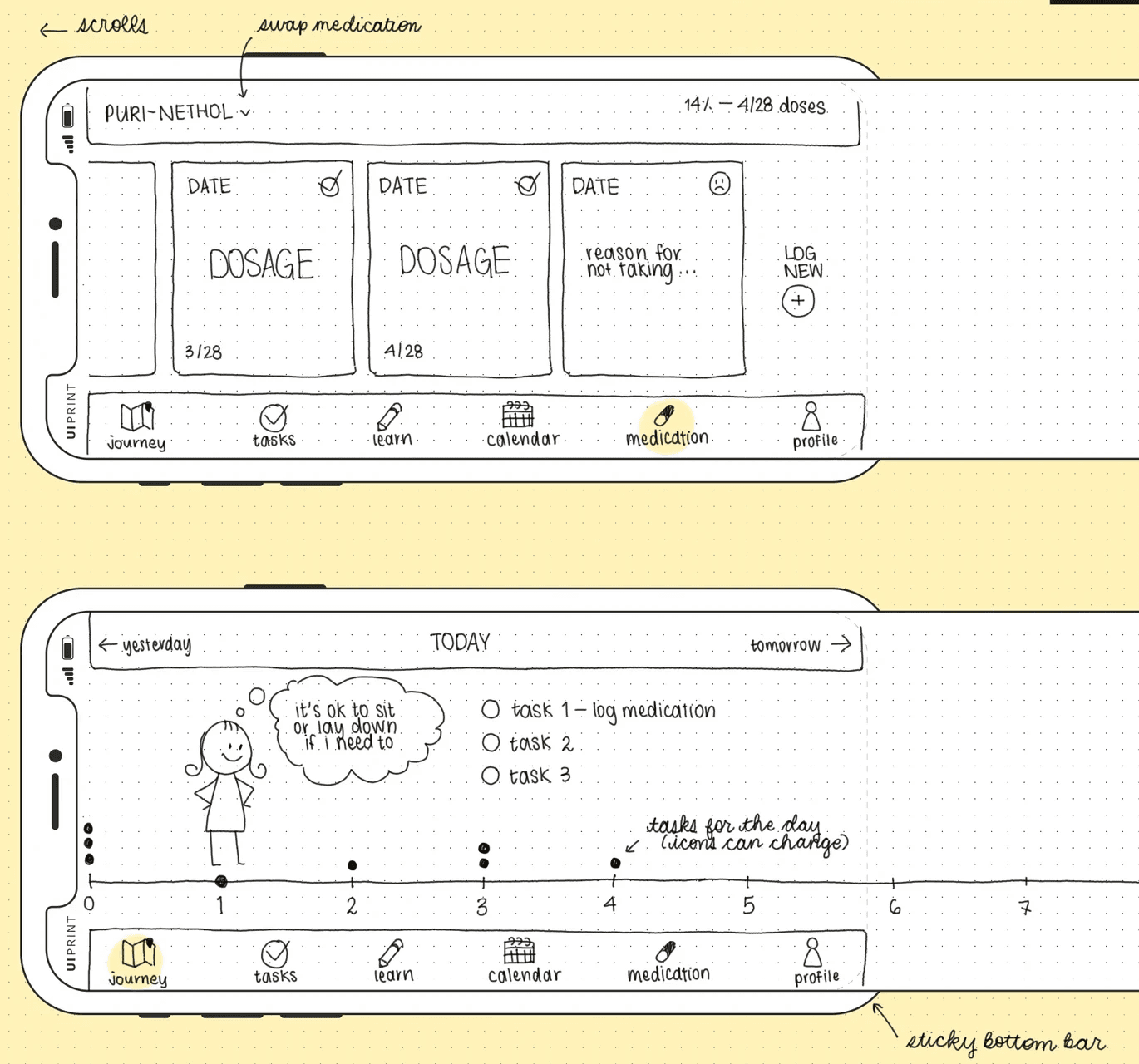 Mixed together with other features like the medication tracker and progression map, the app helps children understand their past, present, and future of where they are in their treatment journey.
